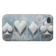 Spades, Hearts, Diamonds and Clubs rendered onto a cool blueish grunge background.