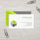 Business / profile card template for architects / designers with isometric 3D cube logo and design elements on lime green and grey.