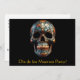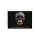 Invite your guests to a vibrant and memorable Día de los Muertos celebration with this striking postcard. The front of the card features a captivating 3D Day of the Dead skull design, showcasing a black base adorned with intricate and colourful floral and scroll patterns in metallic gold, teal, and copper, embodying the festive spirit of the holiday. Below this eye-catching design is a customizable text field, perfect for a short, impactful message like "Celebrate Día de los Muertos!" or a simple "You're Invited!".