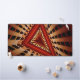 A unique patterned creation with warm colours, rust brown, terracotta, beige and red.