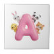 Add a sweet and personalized touch to your nursery or kids' room with this 3D pink balloon Letter A ceramic tile. Featuring a glossy monogram and adorable forest animals, this decorative tile is perfect for shelf display or as part of a custom wall collage. A beautiful keepsake gift for new parents and children.