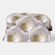 Necessity of beautiful white roses with golden sparkles in the petals. Floral background with metal effect.