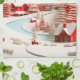 A charming design with modern 3D effects with red houses, fir trees and a complete winter landscape !
