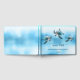 This elegant lake house guest book features an AI created turtle on a turquoise blue ocean background.