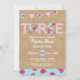 Invitation de fête d'anniversaire de thé rose de pique-nique de toile de jute 3ème. Perfectionnez pour une fille, un garçon ou des jumeaux. CHANGEZ LE TEXTE POUR ADAPTER à VOTRE copie de PARTIE et de dos incluse.