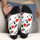 Bridge / duplicate bridge players who love playing game in 3NT (three no trump) will enjoy this pair of crew socks featuring the four card suits along with the saying "3NT My Favourite Contract". Make others do a double-take with a dose of bridge game attitude with this memorable bridge saying socks!