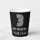 This vintage look and Roaring Twenties inspired birthday-themed paper cup design features a large art deco inspired appearance number “3”, along with the birthday greeting message “Happy 3rd Birthday,” and an editable name. The background is coloured black. Paper cups like this might be used at a party for somebody who is celebrating their 3rd birthday. [~Z0000542]