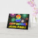 The front of this cheerful, colourful, and fun birthday-themed greeting card design features a large number "3" and the message "HAPPY BIRTHDAY,", both having a rainbow spectrum gradient inspired pattern colouring, along with a bold yellow customizable recipient name. The front also has a multicolored bursting celebratory fireworks inspired background pattern. The inside features a customized birthday greeting message, or could perhaps be cleared and left blank if a message is to be written by hand instead. An exciting personalized birthday card like this might be a fun way to send a message celebrating somebody’s third birthday. [~Z0000471]