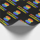This colourful, cheerful, and fun birthday-themed wrapping paper design features a large number "3" and the message "HAPPY BIRTHDAY,", both coloured with a rainbow spectrum gradient inspired pattern, along with a bold yellow editable recipient name. The background is coloured black. Fun wrapping paper like this may be used when wrapping a birthday present or gift being given to somebody who is celebrating their 3rd birthday. [~Z0000475]