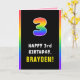 3rd Birthday: Colourful Rainbow # 3, Custom Name Card