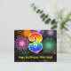 3rd Birthday – Fun Fireworks Pattern + Rainbow 3 Postcard