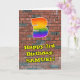 This fun and exciting urban street art and graffiti inspired birthday greeting card design features a large number “3” with a multicolored rainbow spectrum gradient inspired pattern, along with the message “Happy 3rd Birthday,”, and a personalized name. The background of the front has a brick wall pattern. The inside has a personalized birthday greeting message, or could perhaps be cleared and left blank if a message is to be written by hand instead. A vibrant, customized birthday greeting card like this might be a fun way to deliver birthday greetings to somebody who is celebrating their third birthday. [~Z0000586]