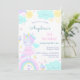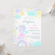 3rd birthday invitation with a funny unicorn, which is surrounded by cute pictures of a rainbow, cloud, sun, ice cream.