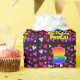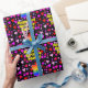 This happy and joyful birthday wrapping paper design features a large number “3” having a rainbow spectrum gradient inspired pattern. It also features the message “Happy 3rd Birthday,”, and a personalized name. The background features a pattern of red, purple, and pink heart shapes of various sizes. Wrapping paper like this might be used when giving a gift or present in honour of somebody’s 3rd birthday. [~Z0000549]
