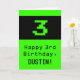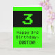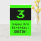 This geeky and fun birthday-themed greeting card design features a large green classic computer gaming style number "3" on the front. It also features the birthday greeting message "Happy 3rd Birthday,", and an editable name. The inside features a custom birthday greeting message, or could perhaps be cleared and left blank if a message is to be written by hand instead. A silly personalized birthday card like this might be a fun way to send birthday wishes to somebody who is celebrating their third birthday. [~Z0000430]