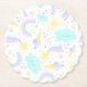 3rd Birthday Paper Coaster with a funny unicorn, which is surrounded by cute pictures of a rainbow, cloud, sun, ice cream...