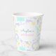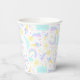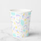 3rd birthday paper cup with a funny unicorn, which is surrounded by cute pictures of a rainbow, cloud, sun, ice cream...