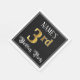 This luxurious and elegant birthday-themed paper napkin design features a custom name and the message “3rd Birthday Party”. The large number “3rd” has an imitation/faux gold-inspired colouring pattern, the words “Birthday Party” are in ornate script-style text, and the background is coloured black by default (although it can be customized). Opulent, fancy paper napkins like this might be useful at a birthday party/celebration being held to celebrate somebody’s third birthday. [~Z0000565]