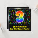 The front of this fun, exciting, and colourful birthday party invitation design features a large number "3" having a rainbow spectrum gradient inspired pattern. It also features a personalized name and the message "3rd Birthday Party!". Part of the background features a fun and colourful music notes and symbols pattern. The back features editable information/details pertaining to the event that the potential guests are being invited to. Fun, editable birthday celebration invitation cards like this might be sent to potential guests of a celebration being held to celebrate somebody’s 3rd birthday. [~Z0000427]