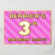 The front of this loving third birthday party foil invitation card design features a personalized name, a large number “3rd”, the message “BIRTHDAY PARTY!”, and a border. The background of the front features an upbeat light pink and dark pink stripes pattern, with heart shapes. The back features personalized details about the event, such as the date, time, venue, and any other information that may be useful. Customizable invitations like these might be a fun way to invite guests to a birthday party being held in celebration of somebody’s 3rd birthday. [~Z0000603]