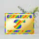 The front of this vibrant and joyful third birthday party foil invitation card features a personalized name, a large number “3rd”, the message “BIRTHDAY PARTY!”, and a border, all featuring a fun, multicolored, rainbow spectrum inspired gradient pattern. The back features personalized details about the event, such as the date, time, place/venue, and any other important information. Eye-Catching, exciting, personalized invitations like these might be used to invite guests to a birthday party being held to honour somebody’s 3rd birthday. [~Z0000593]