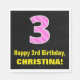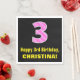 This joyful and fun birthday themed paper napkin design features a large number "3" having a dark pink and light pink stripes pattern containing heart shapes. It also features the birthday greeting message "Happy 3rd Birthday,", and an editable name. Paper napkins like this might be fun to use at a party being held to celebrate somebody’s 3rd birthday. [~Z0000436]