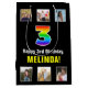 This fun and bold birthday-themed gift bag design features a large number “3“ having a vibrant rainbow spectrum inspired gradient pattern, plus the message “Happy 3rd Birthday,“ and a customizable recipient name. Above and below the message are some photos that can be personalized, perhaps with photos of the recipient, the recipient’s family and friends, and/or the sender(s) of the gift. A upbeat birthday themed gift bag like this might be a fun way to wrap a gift being given to somebody who is celebrating their third birthday. (Photography © Storytree Studios, Stanford, CA.) [~Z0000669]