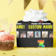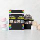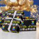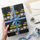 This bold and cheerful birthday wrapping paper design features a large number “3“ having a multicolor rainbow spectrum inspired gradient pattern, plus the message “Happy 3rd Birthday,“ and a customizable recipient name. There are also photos that can be personalized, perhaps with photos of the recipient, the recipient’s family and friends, and/or the sender(s) of the gift. Birthday themed wrapping paper like this might be a fun way to wrap a gift or present being given to somebody who is celebrating their third birthday. (Photography © Storytree Studios, Stanford, CA.) [~Z0000670]