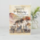 Invite your friends and loved ones and celebrate your child's 3rd birthday with this safari birthday party invitation that features an African savanna landscape in the background and a group of baby animals, which includes a tiger cub, elephant, rhinoceros, ostrich chick, zebra and stork in the foreground.