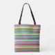This young boy's tote, features a train, carrying the number 3. This number can be changed for any age. Customize it further by personalize the name. Blue background and train smoke sets off the train. The back is a lively and colourful stripe pattern, matching the train colours on the front! Perfect gift that is practical to carry all of those special toys for play dates, library books, school or just to keep a collection together!