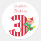Cute circus clown invitation for celebrating a 3rd Birthday featuring a clown peeking out from behind a large red and white striped number three.The text is fully customizable for your own special occasion. Visit CelebrationBazaar to view the collection of gifts, party favours and stationery featuring this cute circus birthday design.