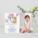 3rd Rainbow Unicorn Birthday Invitations w photo