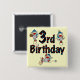 3rd Sock Monkey Baseball Birthday 2 Inch Square Button