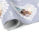 Wedding anniversary wrapping paper in moonstone and blue grey. Personalize this anniversary paper with your own photo and couples name and the anniversary year. Beautiful moonstone gemstone bead effect in a heart shape second Wedding Anniversary wrapping paper ideal to wrap up a special gift for a third wedding Anniversary which is associated with moonstone and a heart symbolizes love. Unique graphic art and design by Sarah Trett for www.mylittleeden.com and www.mylittleedenweddings.com on Zazzle.