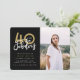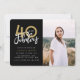 Célébrez votre 40e anniversaire en style avec ces 40 ans de noir et d'or et de fabuleuses invitations photos de fête d'anniversaire surprise. Un design moderne avec du texte de script et des graphismes audacieux. Modifiez la couleur pour la customiser. Partie d'une collection.