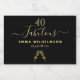 Simple and elegant 40th birthday wine label. A classic black background with two sparkling wine glasses, flutes as decor. With the text: 40 and fabulous. Personalize and add a name and a date. Date of birth or the date of the party. Golden letters. The word Fabulous is written with a modern hand lettered style script with swashes.