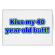 Kiss my 40 year old butt! Humourous design for the 40 year old who loves to make people laugh. Makes a great 40th birthday gift.