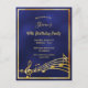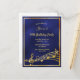 A l'avant : Une carte d'invitation branchée et moderne pour les hommes à la fête du 40e anniversaire. Un arrière - plan bleu foncé, bleu marine. La couleur bleue est inégale. Avec un cadre en or et des notes de musique, des lettres de couleur dorée. Modèles pour vos informations de fête. Retour : arrière - plan blanc. Conseil : Si vous ne voulez pas qu'il ressemble à une carte postale, cliquez sur customiser, allez à l'arrière et retirez le séparateur et le timbre postal.