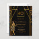 Elégant faux or et glam pour une fête de 40e anniversaire! Une invitation à la fête d'anniversaire de style art déco en faux or et noir pour une fête glamour. Décoré d'une fille à flapper de style années 1920 devant. Modèles de 40 ans, nom et pour vos informations de fête.