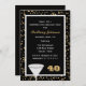 Cette grande coutume Surprise 40ème anniversaire invitation comprend des confettis d'or sur noir dans l'arrière - plan avec un verre pour un toast et le numéro "40" pour une grande façon moderne aux invités invitations à une fête de 40ème anniversaire surprise. Copyright henishouseo