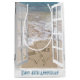 Names in beach hearts and sand with frothy ocean surf and open window view for 40th wedding anniversary