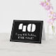 This Roaring Twenties style inspired retro birthday-themed greeting card design features a large art deco style inspired number "40", the message "Happy 40th Birthday,", a customizable name, and a border pattern consisting of thin lines on the front. The background of the front is coloured black. The inside has a customizable birthday greeting message, or could perhaps be cleared and left blank if a message is to be written by hand instead. A customizable birthday greeting card like this might be used to celebrate somebody’s fortieth birthday. [~Z0000486]