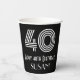 This 1920s/1930s style inspired and vintage style birthday paper cup design features a large art deco inspired appearance number “40”, along with the birthday greeting message “Happy 40th Birthday,” and a customizable name. The background is coloured black. 1920s/1930s style inspired birthday themed paper cups like this might be used at a party for somebody who is celebrating their 40th birthday. [~Z0000542]