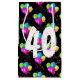Colourful 40th birthday balloon bouquets with party confetti on black background.