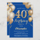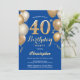 40th Birthday Blue and Gold Balloons Confetti Invitation