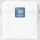 40th birthday favour tag stickers, featuring rustic blue linen burlap charm with chalkboard letters in white and personalized with name and date below.