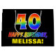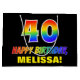This colourful, cheerful, and fun birthday-themed gift bag design features a large number "40" and the message "HAPPY BIRTHDAY,", both coloured with a rainbow spectrum gradient inspired pattern, along with a bold yellow editable recipient name. The background is coloured black. A fun gift bag like this might be used when giving a gift or present in honour of somebody’s 40th birthday. [~Z0000477]