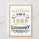 For those born in 1986 and celebrating their 40th birthday we have the ideal birthday party invitation with a vintage feel. The white background with a black and gold vintage typography design design is simple and yet elegant with a retro feel. Easily customize the text of this birthday gift using the template provided.