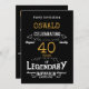 40th Birthday Born Legendary Black Gold Retro Invitation