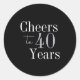 40th Birthday Cheers 40 Years Black Silver Party Classic Round Sticker
